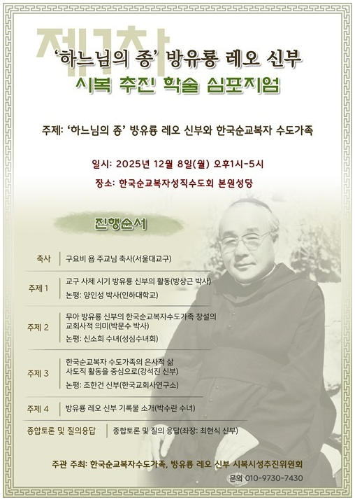 12월 8일, 방유룡 신부 발자취 조명하는 심포지엄 열린다 페이지 정보 작성일2025.12.02 조회25회 관련링크 https://news.cpbc.co.kr/article/1168733?division=NAVER 본문 - 이전글 다음글 목록
